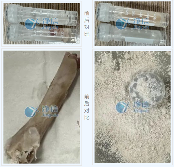 與實驗前對比,組織塊成均勻漿狀,骨頭呈細膩粉末狀。在生物提取實驗中,我們需要對樣品進行研磨,研磨的方式一般可分為干磨和濕磨,但無論哪一種方法,呈現的效果需要足夠均勻和細膩才能保證后續提取實驗的成功率。本實驗中的樣品均已達到實驗要求,可用于后續提取實驗。