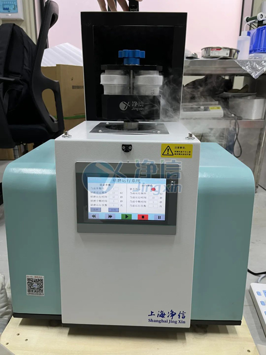 2. 將研磨罐放入液氮中浸泡五分鐘;