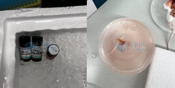 3、小鼠斷頸處死后,取出肝臟部,放入有PBS的培養皿中,放在冰上。