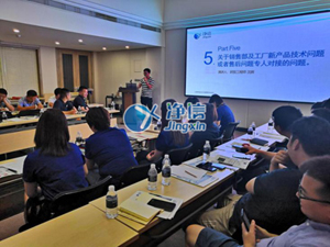 凈信研發部工程師沈工也在會上就銷售部及工廠新產品技術問題以及售后專人對接問題進行了講解和討論。公司在研發新產品的同時也非常重視產品使用當中所出現的技術問題和售后問題。凈信目前在全國擁有十幾個辦事處,對于售后這一塊,我們也是非常有信心的。能夠及時有效的幫客戶解決問題。