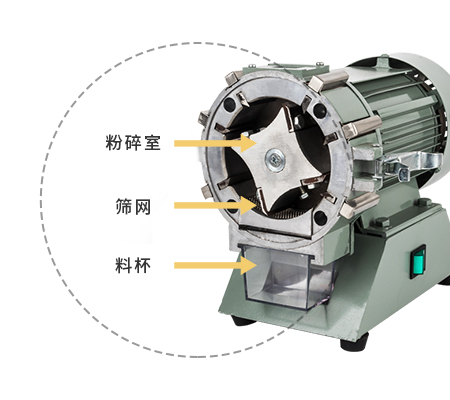 用于測定三麥、稻谷、豆類、以及糧食作物的水分、蛋白質、含油式樣的粉碎處理植物糧油粉碎機是利用高速旋轉的轉刀與定刀形成切削面進行粉碎。